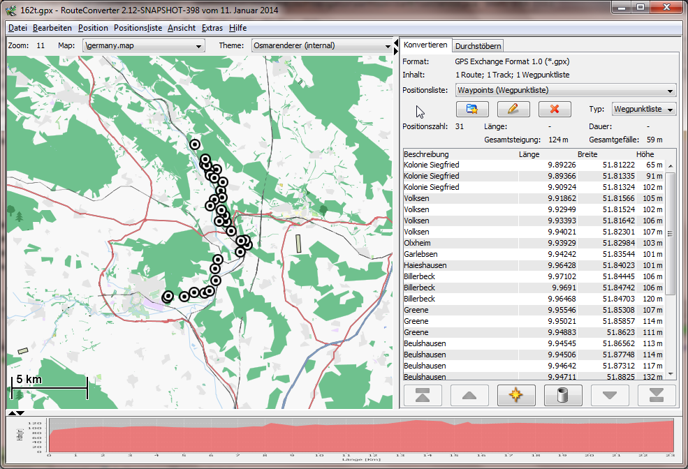 • es gibt einen eigenen Rendering-Modus für Wegpunktlisten, so wie von der Google Maps-basierten RouteConverter-Version gewohnt