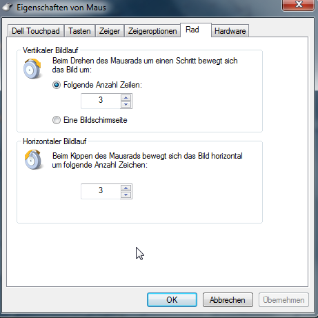 ich habe die Mauseinstellungen bei mir angesehen, es sind bei mir 7 Zeilen pro Mausrad-Schritt eingestellt. Ich habe versuchsweise mit der Einstellung 3 Zeilen (wie bei dir) versucht, das Verhalten beim Zoomen ist