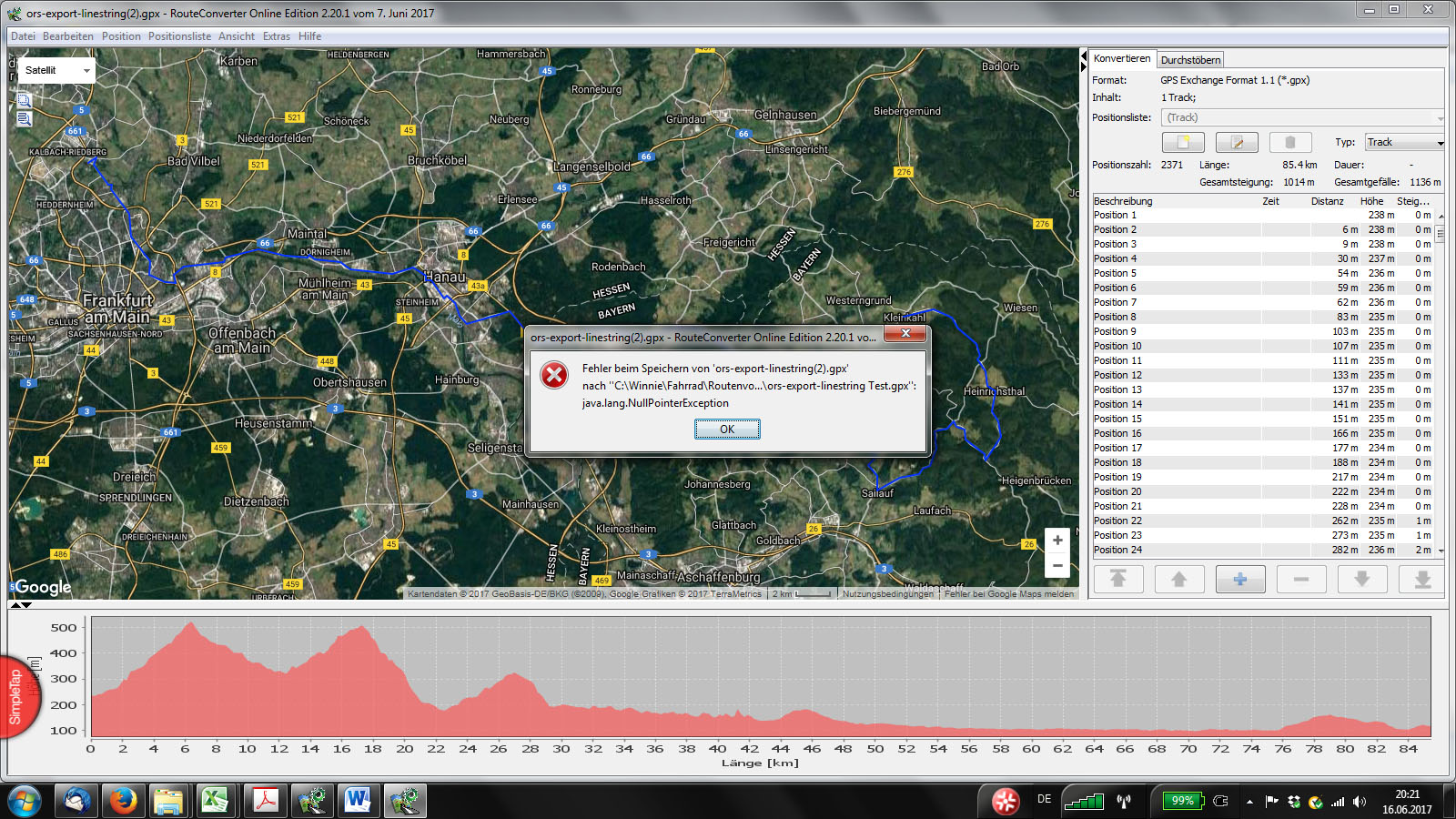 2. Ich öffne sie in Route Converter, dort sieht alles ganz normal aus (Anlage 2: Screenshot von 20.20.40 Uhr)