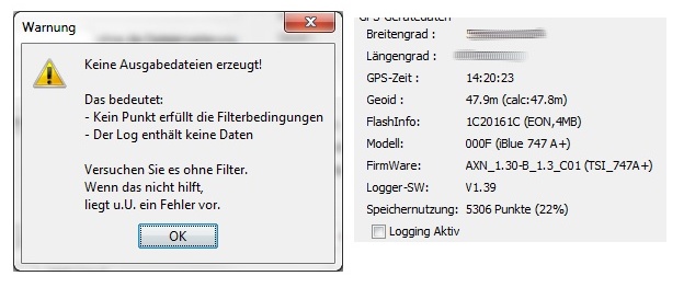 Sprich, ich kann Bt747cmd_64b nicht mehr benutzen. Er sieht in der Spiechernutzung 5306 Punkte, liest auch aus, aber ein Konvert ist nicht. Am Ende habe ich eine BIN-Datei, das funkt noch.