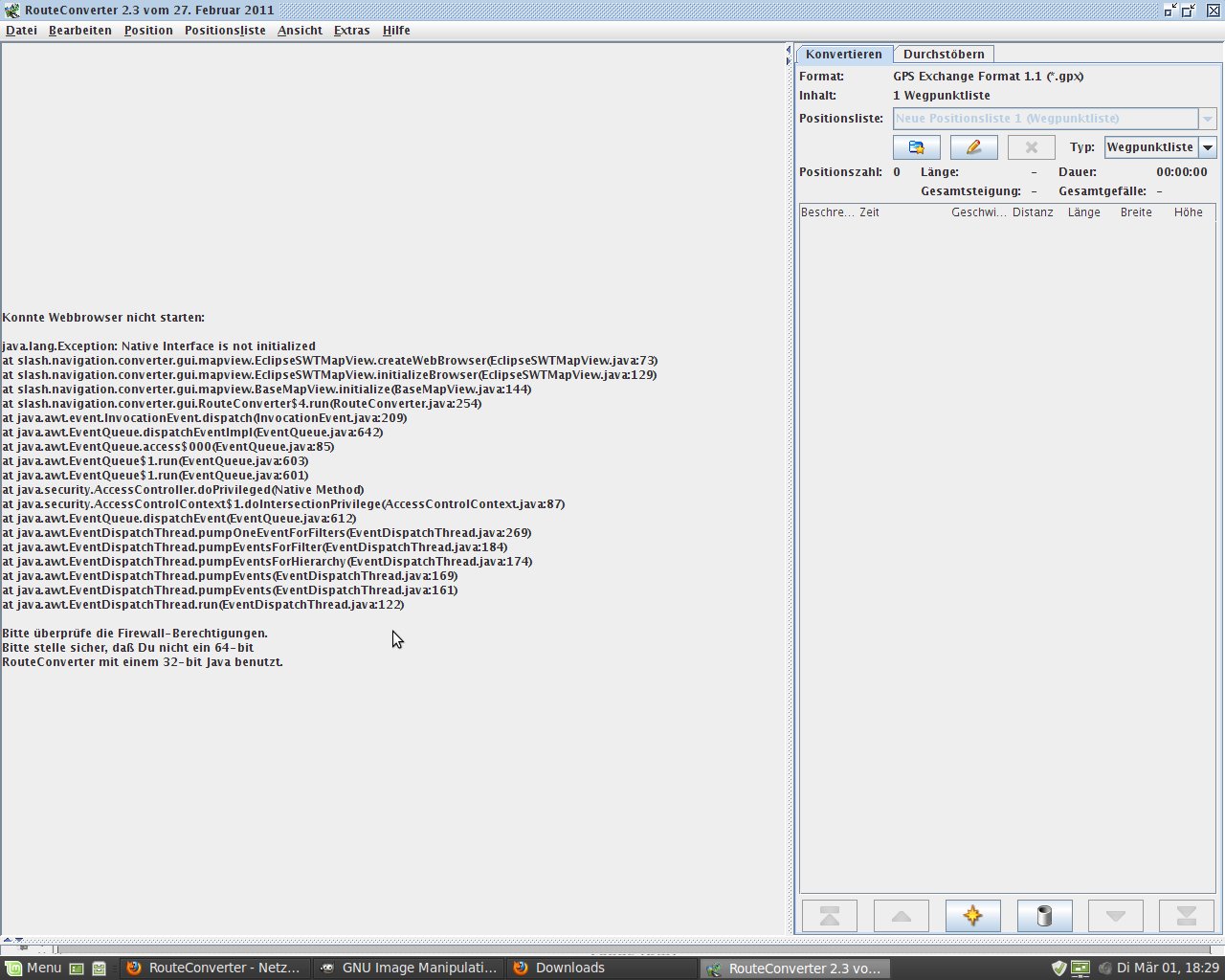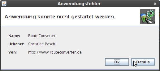 Datei wird geladen. Das Hauptfenster wird geöffnet und da wo die Karte sein sollte steht Text von Java, in der Java feststellt, das kein natives Webkit festgelegt ist und vermutet wird dass ich nicht die richtige bit-Version nutze siehe auch Beitrag #5 Anhang 'Webstart32.jpg'.
