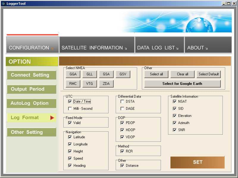 Eventuell ist da zum SPICKEN" das Tool "bt747" geeignet, welches auch unter anderem diese Konfigurationsoptionen bietet.