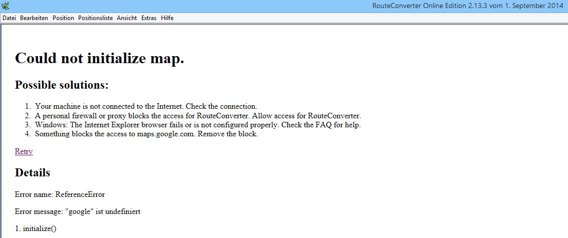 Mein Frage zu den genannten Fehler: Was ist am Rechner nicht richtig, dass er die alten Versionen nicht startet? Ich habe die Punkte 1 – 4 abgearbeitet und kann mir nur den Punkt 2 als Fehlerquelle vorstellen, denn ich kann im Browser mit Google Maps arbeiten. DIe Version 2.13 ist vor einiger Zeit noch gelaufen. Leidewr kann ich nicht sagen, was zwischenzeitlich auf dem Rechner geändert wurde.
