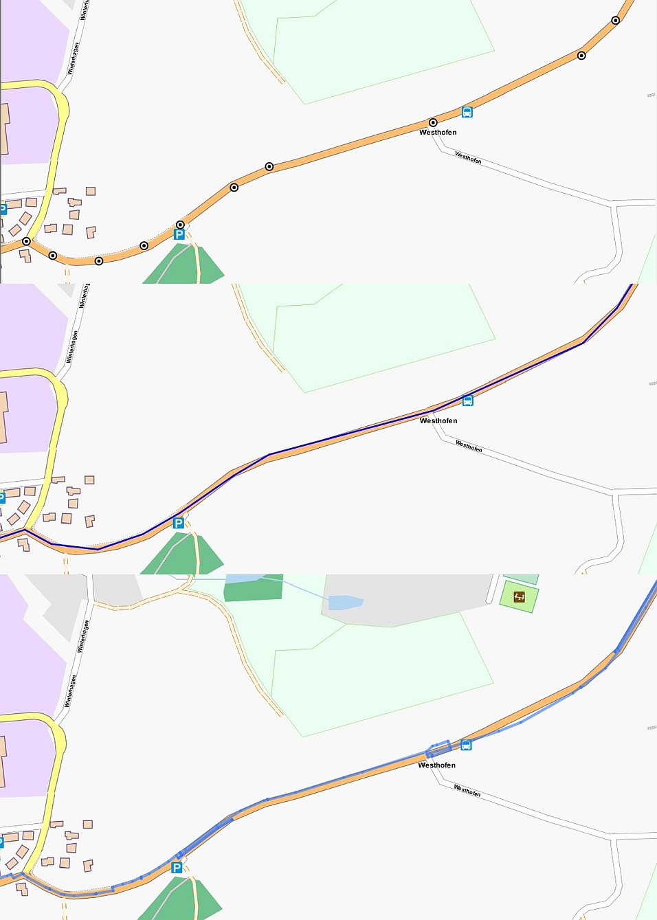Zum ersten braucht es deutlich länger als zuvor, bis die Route angezeigt wird. Zum zweiten sind die bereits früher vorhandenen Stiche nicht nur vorhanden, sie haben sogar zugenommen. AUßerdem sind diverse Ehrenrunden hinzugekommen.