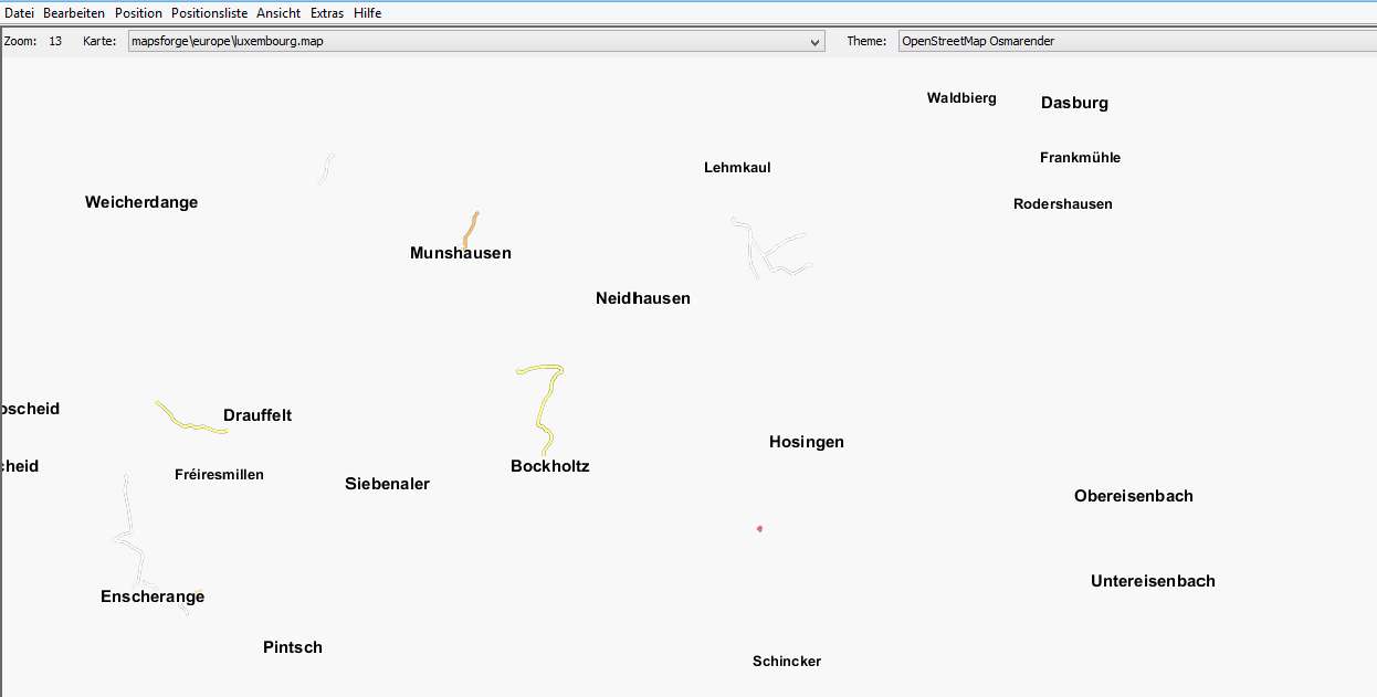 Die Karten von Mapsforge sind in der Darstellung sehr lückenhaft und können (für meine Zwecke) nicht verwendet werden. (Bild 2)