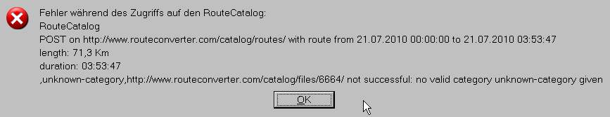 Hochladen und Routendienst "Routecatalog" auswählen führt bei mir zu einer Fehlermeldung "unknown-category"