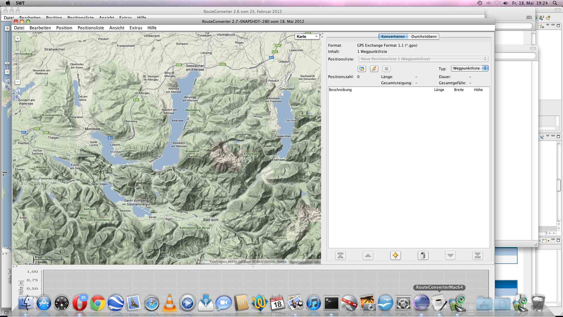 Auch interessant wäre, es das "SWT" in der Menüleiste durch "RouteConverter" zu ersetzen. Dieser Artikel ist etwas alt, aber vielleicht klappt das immer noch. Könntest Du das ausprobieren, um RouteConverter besser an Mac OS X anzupassen?