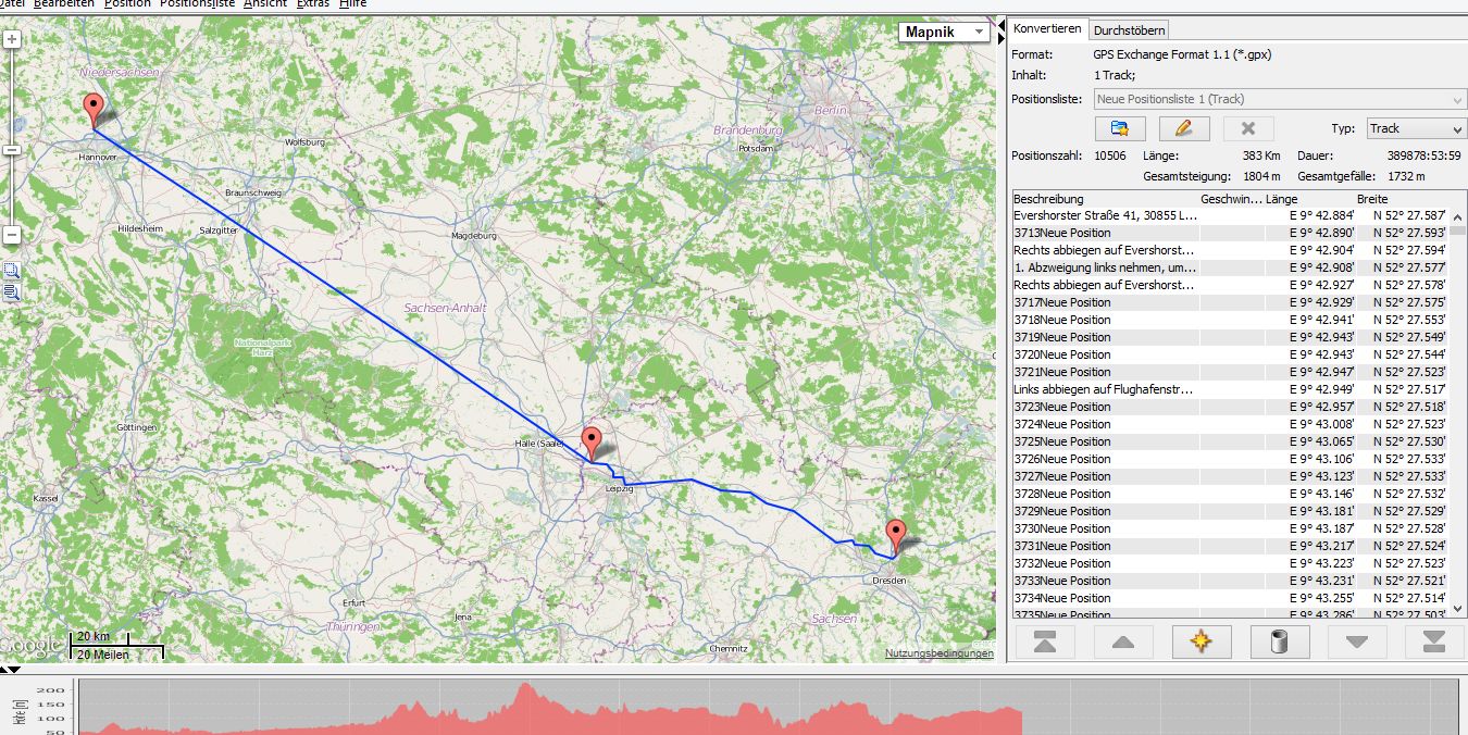 erstmal ein dickes Lob! Seit ich RouteConverter habe sind Planungen für Touren sehr komfortabel. RC verwende ich schon einige Jahre ohne Probleme.
