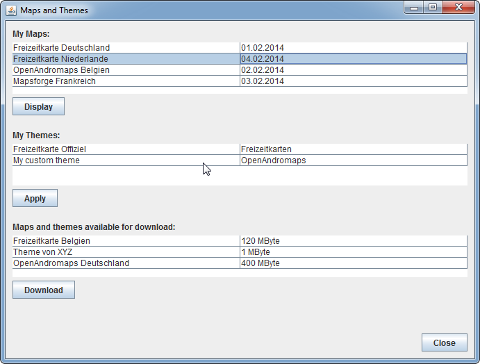 neu ist auch, daß man von Freizeitkarte, Openandromaps und mapsforge die dortigen Karten und Themes mit einem Klick herunterladen kann