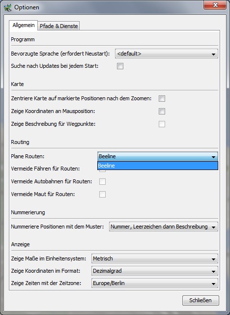 Eine Neuerung der Version ist ja folgende: "benutzt Version 3.18 der Google Maps API welche das Einblendungen von Kartenkacheln einführt und das Vermeiden von Fähren beim Routing unterstützt". Ich hab jetzt allerdings das Problem, dass ich das nicht mehr auswählen darf - die entsprechenden Checkboxen in den Optionen sind deaktiviert (Bild 2.14b) und es ist nur noch "Beeline" vorgegeben, wo ich früher noch den Typ auswählen konnte (Fahrrad und dann Einzeleinstellungen, siehe Bild 2.13c).