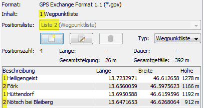 Habe ich z.B. vorher einen Track und zwei Wegpunktlisten in einer *.gpx Datei, dann sind es nach dem Speichern ein Track und eine Wegpunktliste.