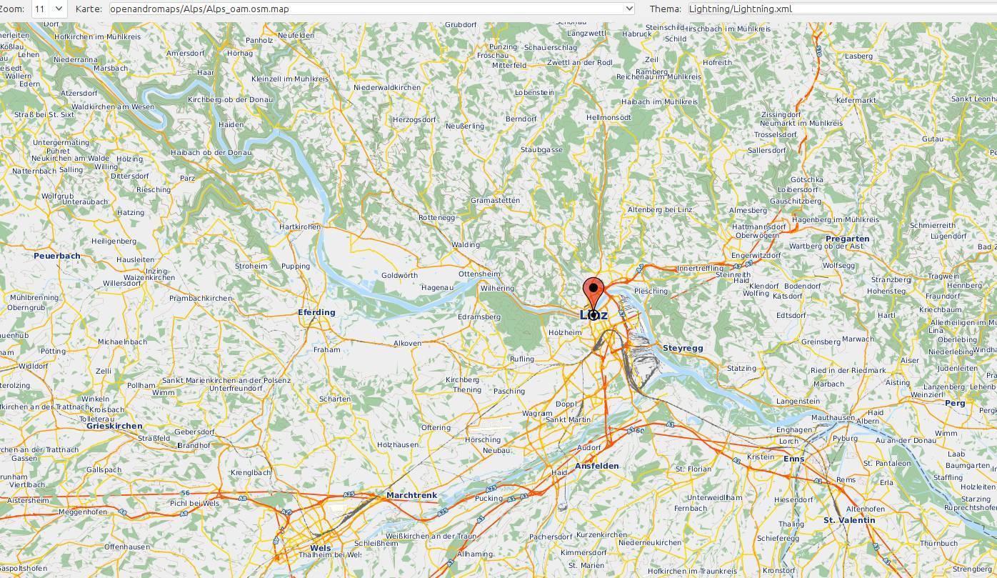 Den Wechsel des BS nehme ich zum Anlass nach der Lösung von folgendem Problem zu forschen das unter W10 und Linux auftritt. In meinen Karten werden z.B. Radrouten und vermutlich Wanderwege farblich hervorgehoben s. Bilder mit Zoom 11 (z.B. EV6, EV7 usw.) und 14 (gelbe Strecken) bei Lienz. Auf den Bildern sieht man auch welche Karten und Styles ich nutze.