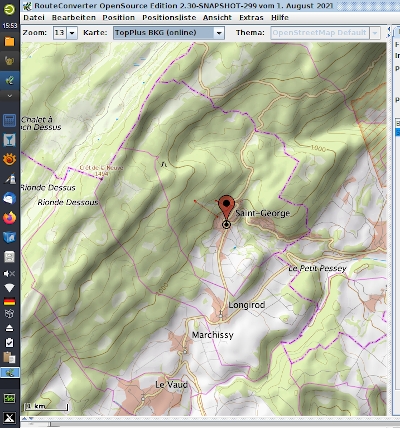 Mein Overlay funktioniert auf dieser Linux-Kiste erstaunlicherweise nur, wenn es gleichzeitig mit "Zeige schattierte Hügel" eingeschaltet ist, sieht dann mit der TopPlus so aus: