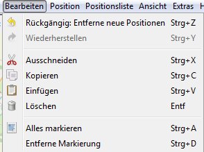 Quote:Löschen findet sich auch unterhalb der Positionsliste mit "-", oder man nimmt die Tastatur. Das ist symmetrisch zum "+", das sich auch nicht im Kontextmenü befindet.