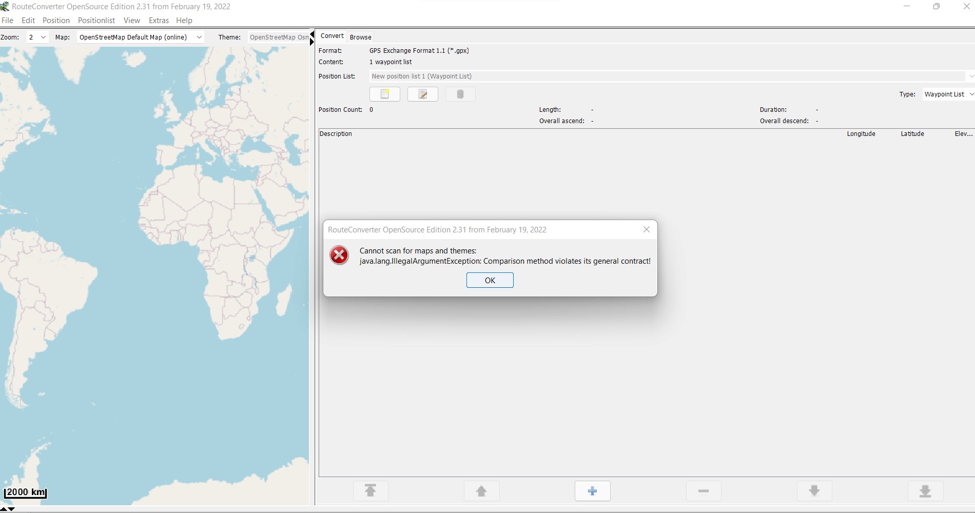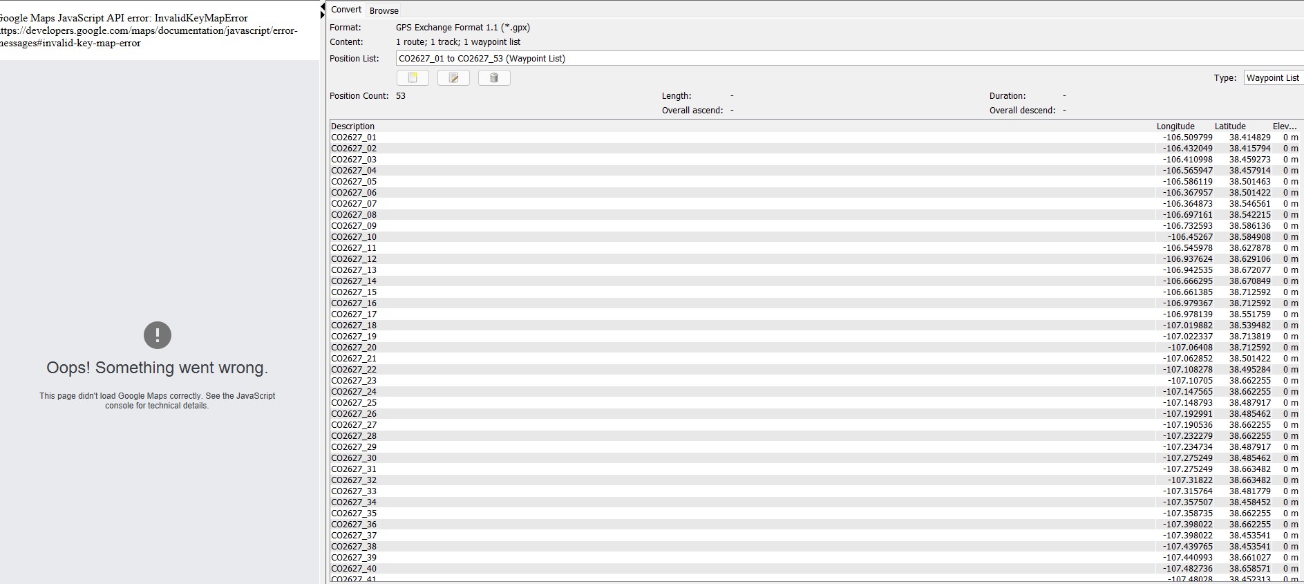 Still get the Java error as RouteConverter loads but not critical to me as long as this conversion works.