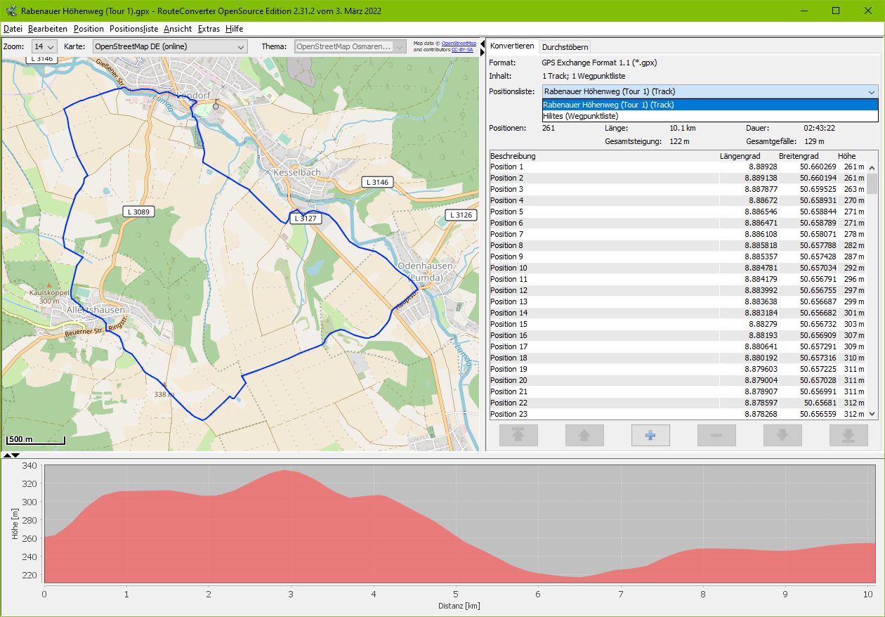 Ich hätte also gerne, dass ich Track und Wegpunktliste gemeinsam auf der Karte sehe.